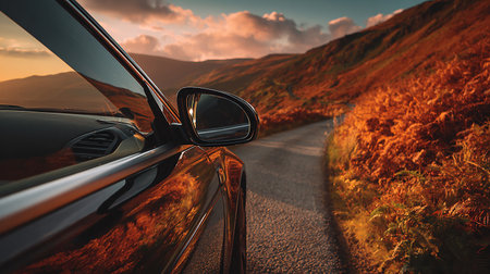 in car. Summer vacation and travel, romantic road trip mountain st sunset beautiful landscape