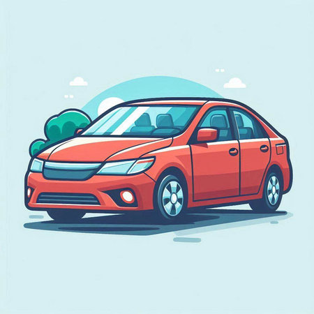 Red car silhouette with digital particles and lines, symbolizing modern technology and innovation