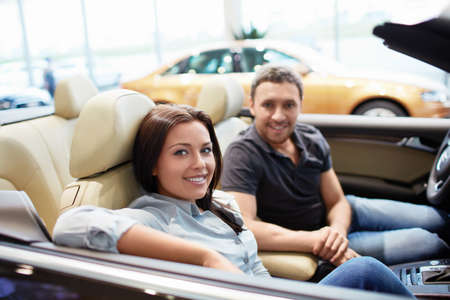 Detailed view of car interior and exterior at automobile showroom for purchase or rental