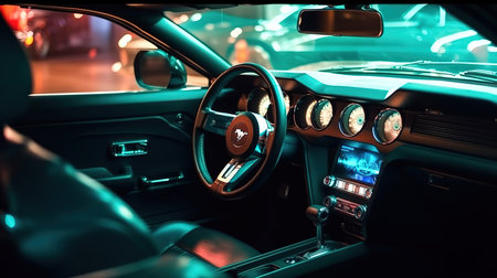 San Francisco, USA - August 17, 2022 Salon Ford Mustang car. Generative Ai