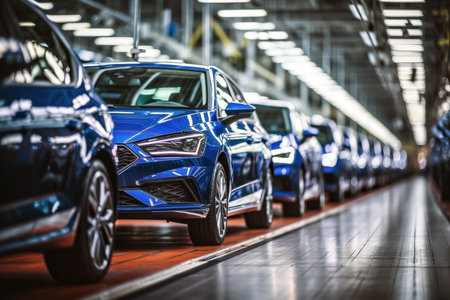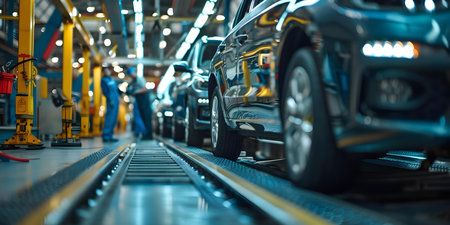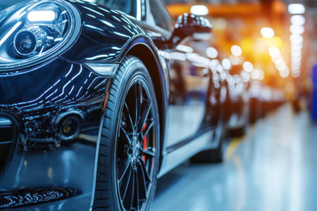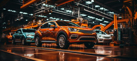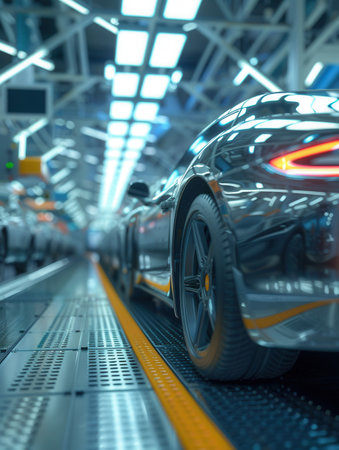 Modern automotive assembly line: efficient production of luxury cars.