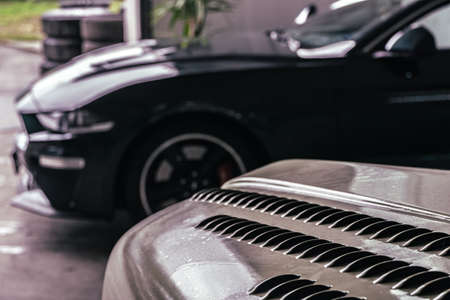 Close up of luxury sport car in showroom. Luxury car