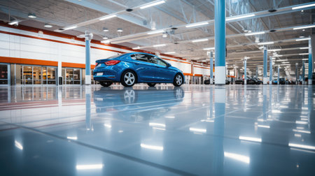 Luxury black car displayed in modern showroom for sale and rental business opportunities
