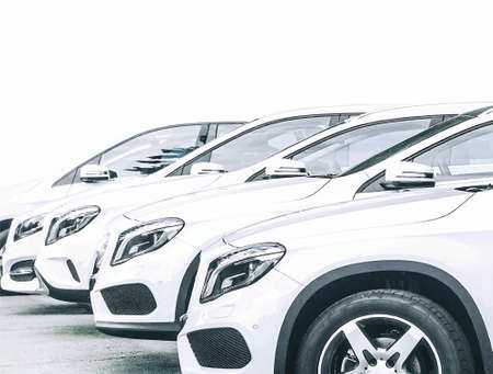 Car Sales and Loan Industry Concept. Row of Brand New Vehicles in Stock.