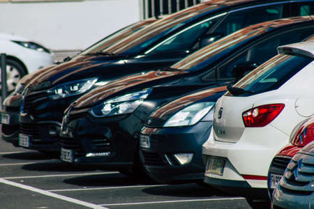 Seville Spain September 22, 2021 Cars parked in the streets of Seville, an emblematic city and the capital of the region of Andalusia, in the south of Spain
