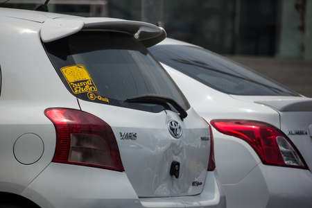 Chiangmai, Thailand - April 14 2020: Private Car toyota Yaris Hatchback Eco Car. Photo at road no 121 about 8 km from downtown Chiangmai thailand.