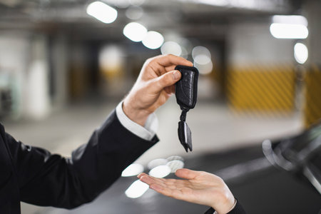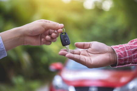 Person Handing Car Key to Another Person, Convenient Vehicle Transfer
