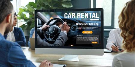 car rental website on computer screen for tourist to rent a car for transportation brisk