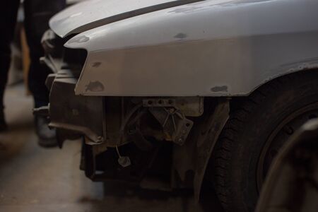 Krasnodar, Russia - October 18, 2017: A car with an open hood in the garage. Tools and repair.