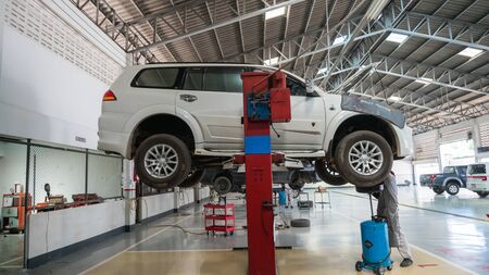 SUKHOTHAI - DECEMBER 23:mechanic repairing car at MItsubishi Motor Service station on December 23, 2017 in Sukhothai, Thailand.