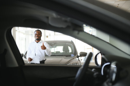 happy indian man buy new biodiesel eco automobile in lux showroom