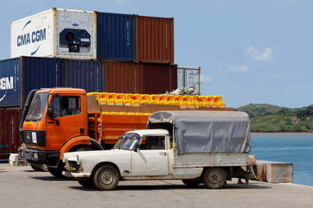 NOSY BE ,MADAGASCAR - NOVEMBER 3.2016 Malagasy peoples prepare ship carriage in port of Nosy Be, Madagascar's largest and busiest tourist resort. Nosy be, Madagascar, November 3. 2016