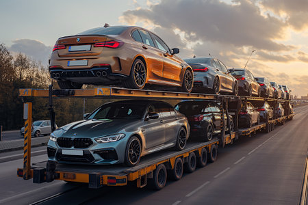 car transporter evening close up