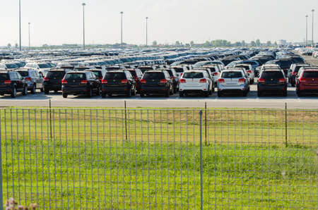 TUSCANY, ITALY - 27 June: New cars parked at distribution center in Tuscany, Italy. This one of biggest distribution centers in Italy.