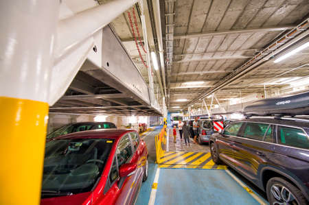 Rows of parked cars on a ferry ship between Tallinn and Helsinki. photo