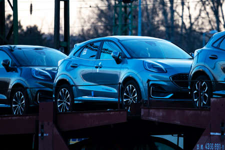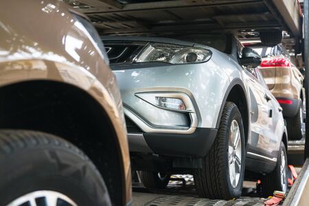 Transport of new cars on freight wagons