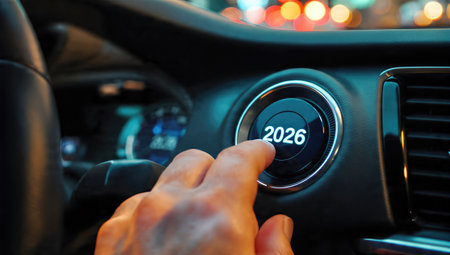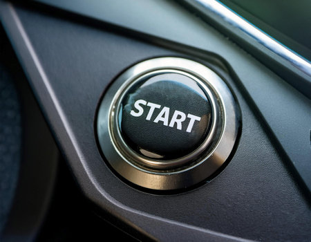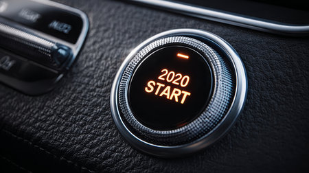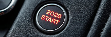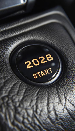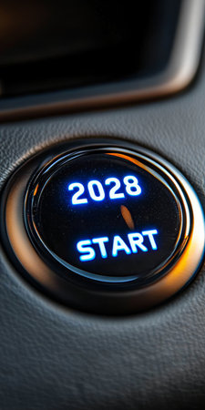 Illuminated Start Button on a Car Dashboard Symbolizing the Beginning of a New Era in 2028
