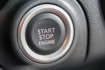 Close up finger pressing the engine start/stop button of a car,car driver stating the engine
