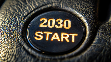 Futuristic Engine Start Button Featuring 2030 Text, Representing Innovative Automotive Design