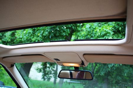 A tight view of the sunroofs seal which helps to prevent water and air from entering the car