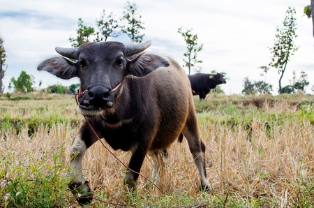 The female thai buffalo in a field