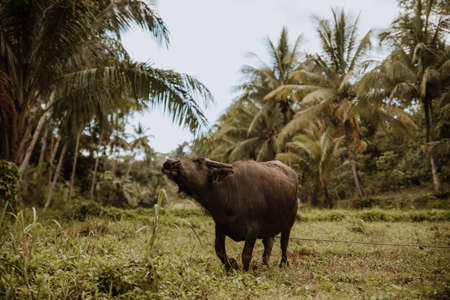 an asian buffalo in the vegetation of the bohol forest in the philippines