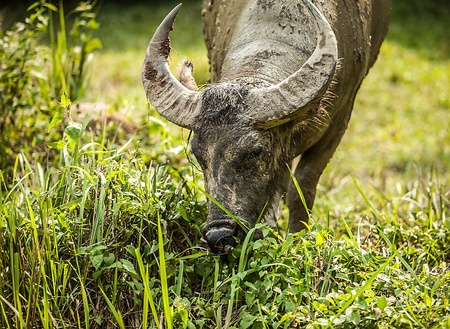 buffalo eating grass in nature