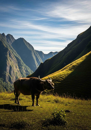 Buffalo on the grassland in Sapa, Lao Cai, Vietnam