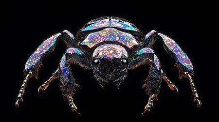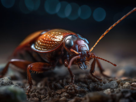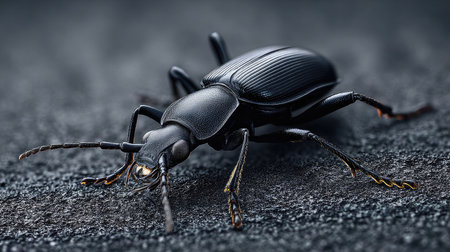 Detailed Macro Shot of Black Beetle on Dark Surface