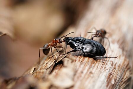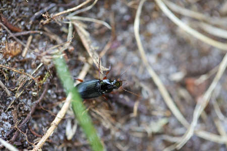 Beetle on a rock in the wild. Wildlife scene from nature.
