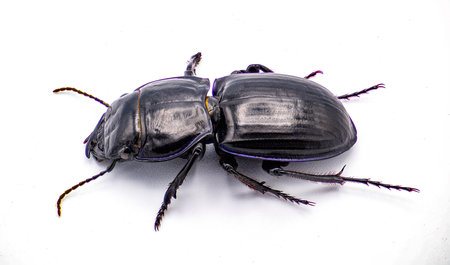 Macro shot of forest dung beetle (Anoplotrupes stercorosus) on white background surface