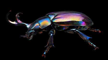 Stag beetle on dark background. 3d rendering. Computer digital drawing.