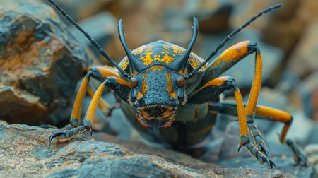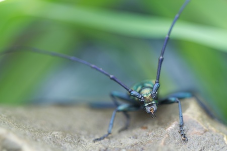 long-horned beetle closeup under natural conditions