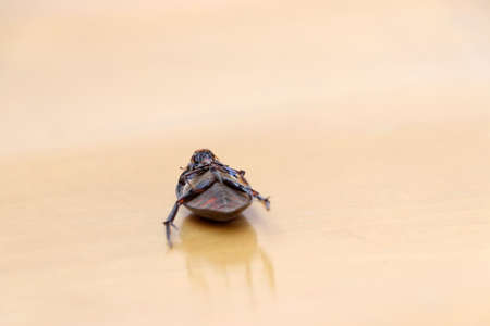 A closeup shot of a beetle walking on a smooth surface