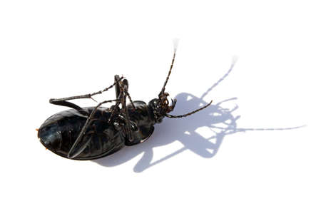 The black bug head over heels on a white table