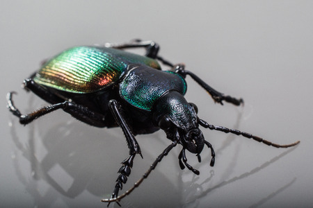 Beetle on reflective surface. (Calosoma sycophanta)