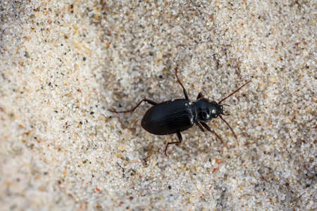 Image of black beetle on sand background. Insect Animal. Insect Animal