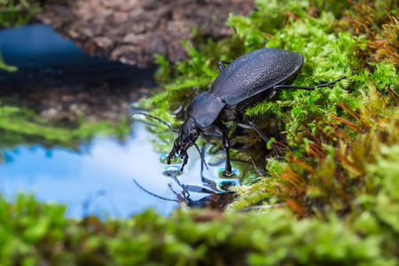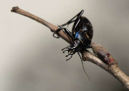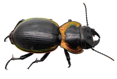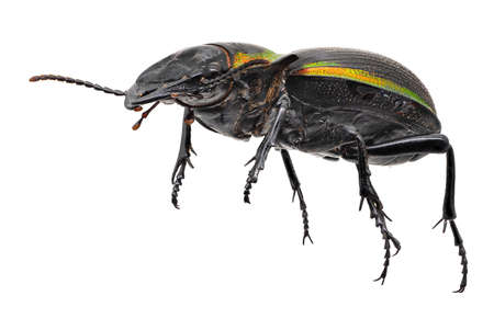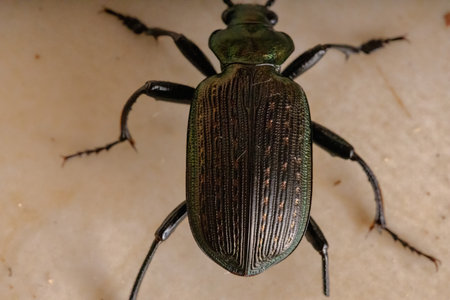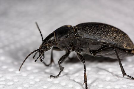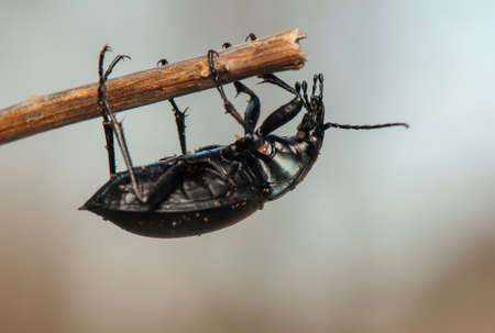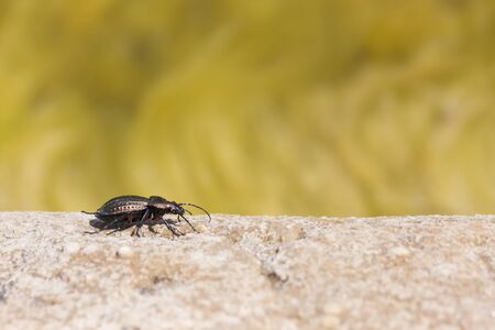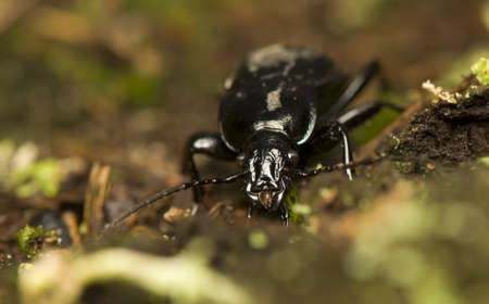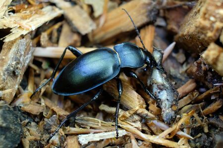 Carabus coriaceus is a species of beetle widespread in Europe, where it is primarily found in deciduous forests and mixed forests. close up.