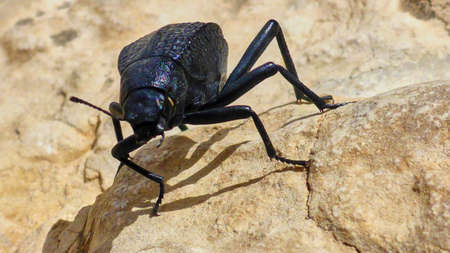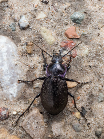 Carabus scabrosus caucasicus, common name huge violet ground beetle, is a species of predatory beetle, feeding on terrestrial molluscs - mainly land snail Generative AI