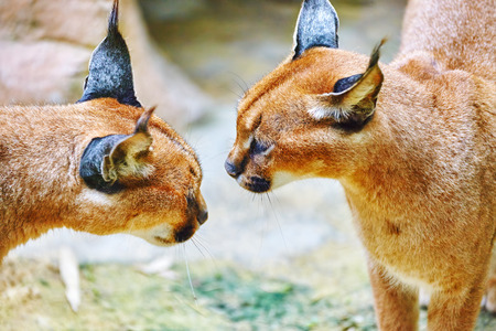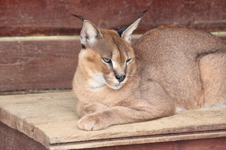 Portrait desert cats Caracal or African lynx with long tufted ears.