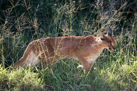 Caracal, Caracal lynx, single mammal in grass, South Africa