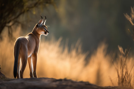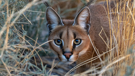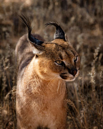 Beautiful and Wild Caracal or Prairie lynx in its natural habitat.