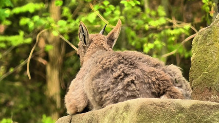Eurasian lynx and cub in the zoo. Wildlife scene from nature.
