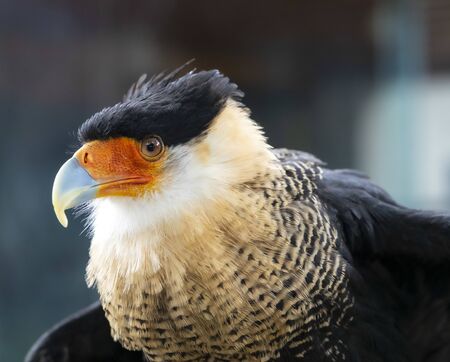 Detailed portrait of a crested caracara cheriway bird