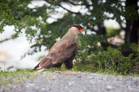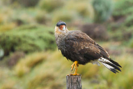 Bird of the Caracara in the Torres del Paine National Park. Autumn in Patagonia, the Chilean side