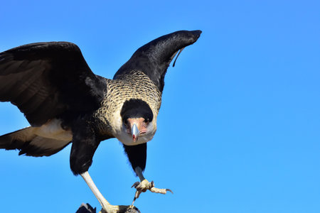 Bird of prey. Native fauna of the biome pampa. Carcará. South American Hawk in contrast to the blue sky. Preserved nature. Top of the food chain.