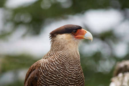 Beautiful colored crested caracara hawk almost gentle looking