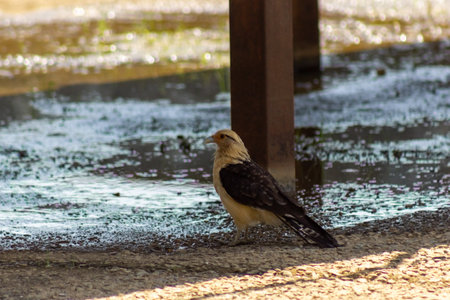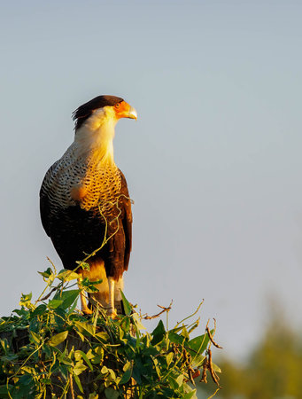 A Caracara bird sits in the afternoon sun outdoors