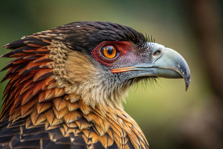 beautiful closeup portrait of the face of a southern crested caracara, tropical bird specie from america