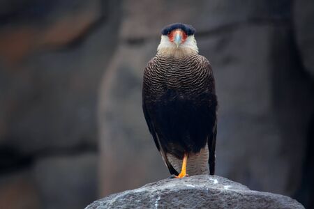 Crested Caracara standing at rock , Portrait of a raptor bird